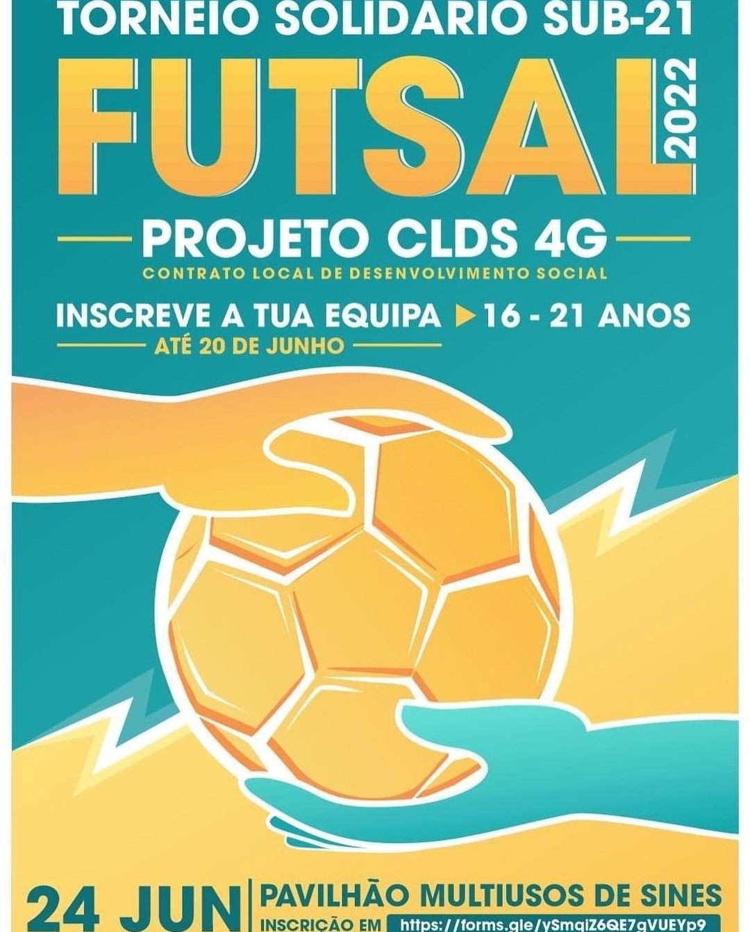 O Pavilhão Multiusos de Sines recebe, a 24 de Junho, o Torneio Solidário Sub-21 de Futsal. Trata-se de uma organização do CLDS 4G Viver+Sines, com a parceria da Câmara Municipal de Sines, d´ Os Independentes F.A. e do CRI Litoral Alentejano-Intervenção Comportamentos Aditivos e Dependências. O torneio tem como principal objectivo constituir-se como um evento de angariação de bens alimentares que, posteriormente, serão organizados em cabazes para serem distribuídos por famílias necessitadas de Sines. O pagamento da inscrição no torneio e o pagamento das entradas para assistir aos jogos devem ser feitos através da doação de bens alimentares. As inscrições para o torneio estão abertas a jovens dos 16 aos 21 anos, nesta ligação: forms.gle/KR6JRKJ3Sh6JZvrJ8.