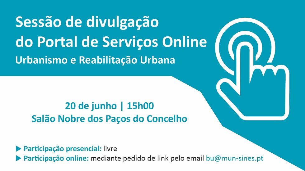 O Município de Sines, no âmbito do projecto de implementação do portal de serviços online, encontra-se num processo de mudança do paradigma de relacionamento com cidadãos e empresas, promovendo, para tal, uma sessão com o objectivo de divulgar, envolver, auscultar e incorporar contributos de modo a potenciar o exercício efetivo da cidadania digital na área do Urbanismo e Reabilitação Urbana.