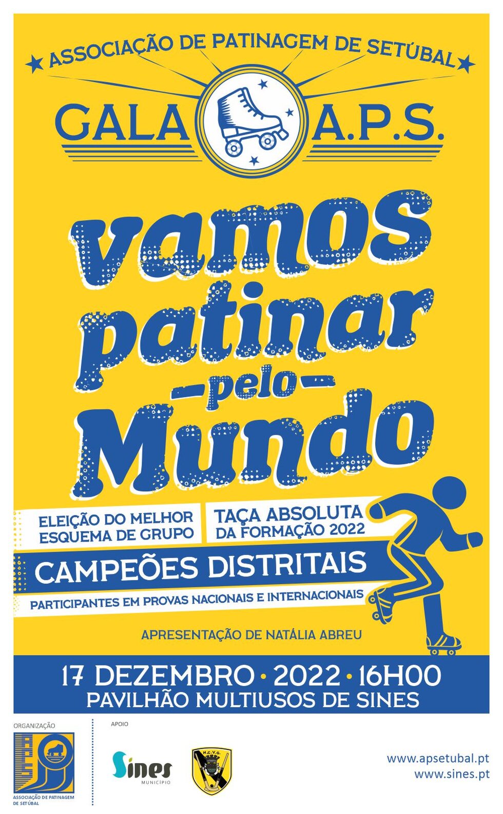 O Pavilhão Multiusos de Sines vai receber, no dia 17 de dezembro de 2022, o evento de patinagem artística Gala APS 2022.