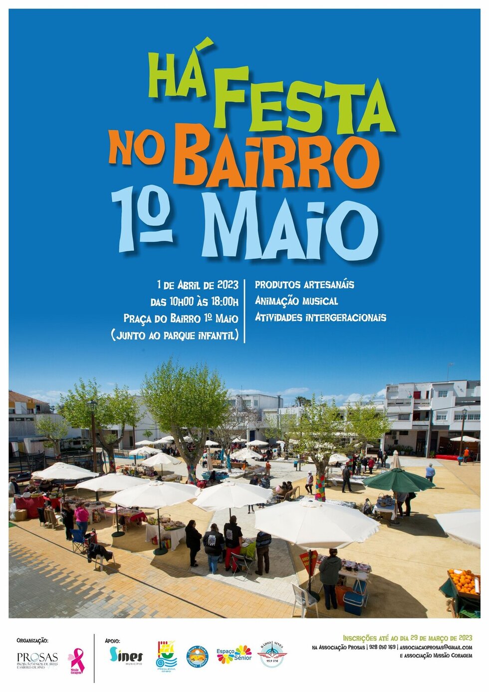 Há Festa no Bairro 1.º de Maio é uma iniciativa do Prosas e da Missão Coragem, com o apoio de várias entidades, entre elas a Câmara Municipal de Sines.