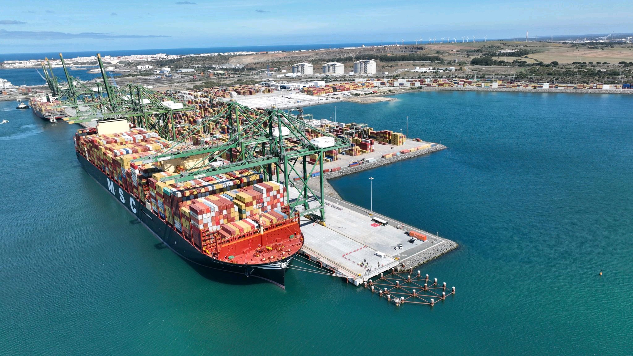 O MSC Tessa, considerado o maior porta-contentores da actualidade, atracou em Sines, no Terminal XXI, ao início desta sexta-feira.