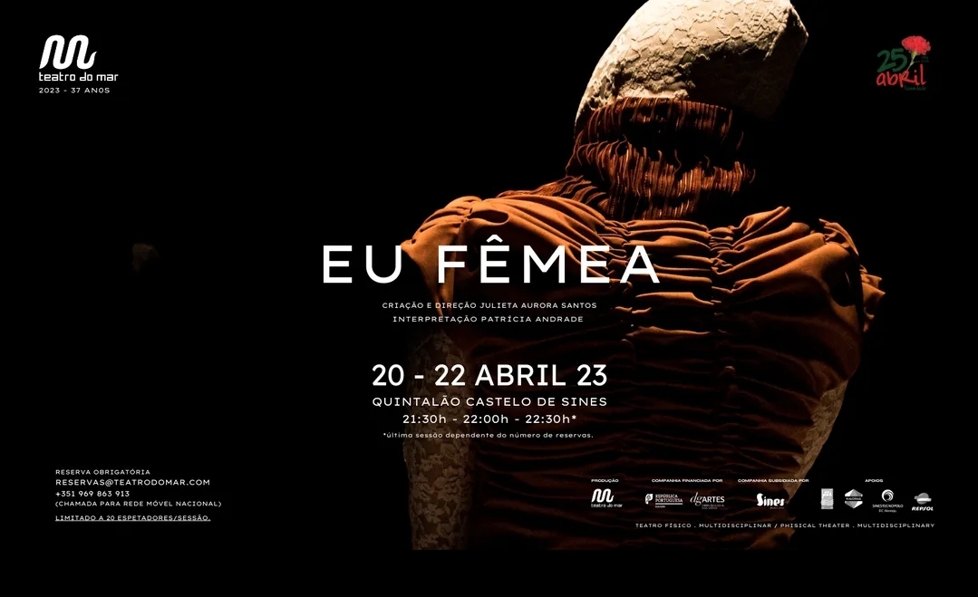 EU FÊMEA é um solo curto para uma atriz, uma performance física que decorre dentro de uma estrutura alusiva a um Peep Show. Com sessões limitadas a 20 espetadores de cada vez, munidos de auriculares e inseridos em cabines individuais, o espetáculo assume um caráter particularmente intimista. A atriz, fechada no interior do cenário circular, não tem qualquer contato físico ou visual com o público. De registo poético, assente nas narrativas do corpo, “Eu Fêmea” reflete sobre a invisibilidade da Mulher ao longo da História, e a herança cultural, física e espiritual, que habita hoje o ser feminino.