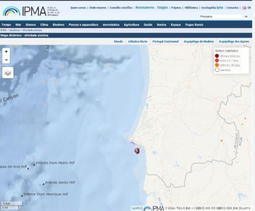 O IPMA registou na noite de sexta-feira um sismo de magnitude 3.3 a cerca de quatro quilómetros a sul de Sines.