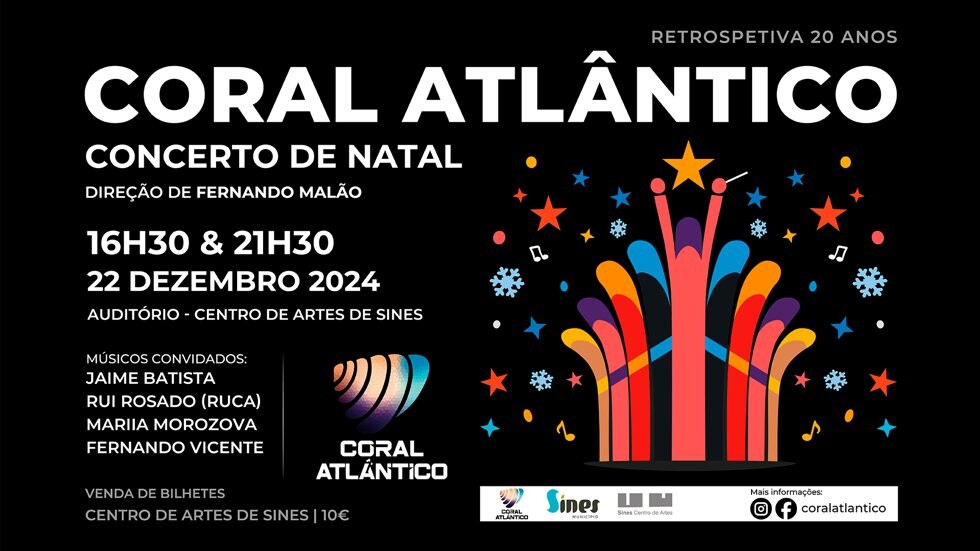 O Coral Atlântico volta ao Centro de Artes de Sines no dia 22 de dezembro, com o sempre esperado concerto de Natal, este ano com duas sessões, às 16h30 e 21h30