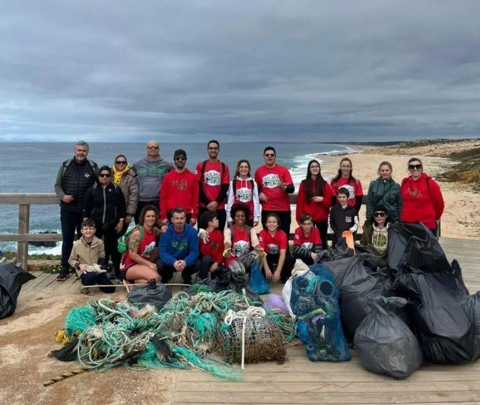 Os elementos do grupo participaram na iniciativa, tendo partilhado uma foto com o material que foi recolhido na praia.
