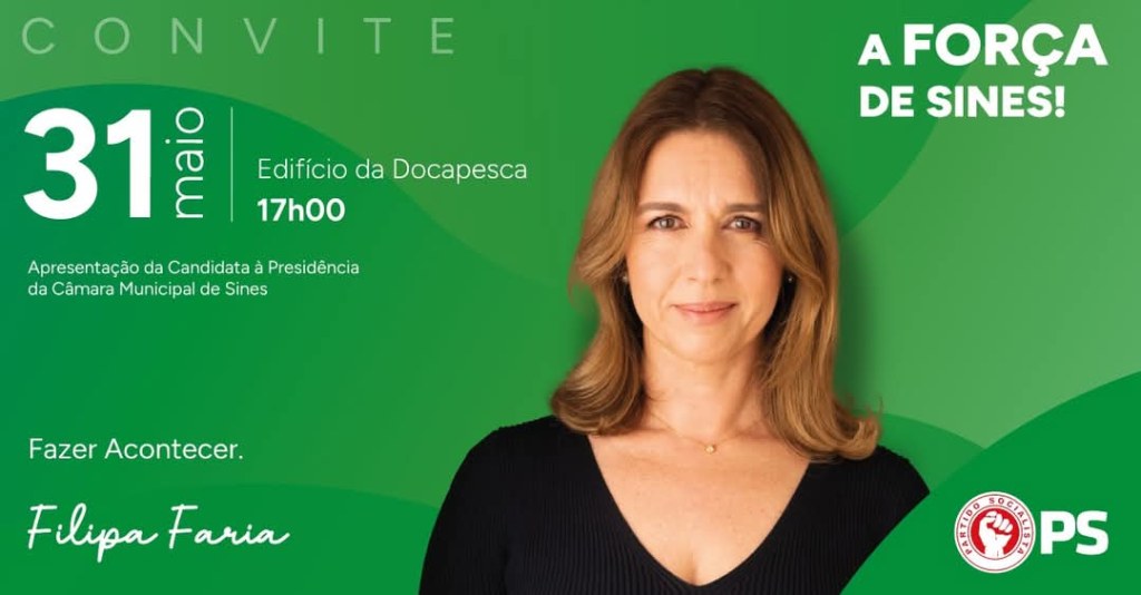 O Partido Socialista anunciou que irá apresentar no próximo sábado, dia 31 de maio, pelas 17h00, no edifício da Docapesca, a candidata à Câmara Municipal de Sines, Filipa Faria numa sessão que é aberta à população.