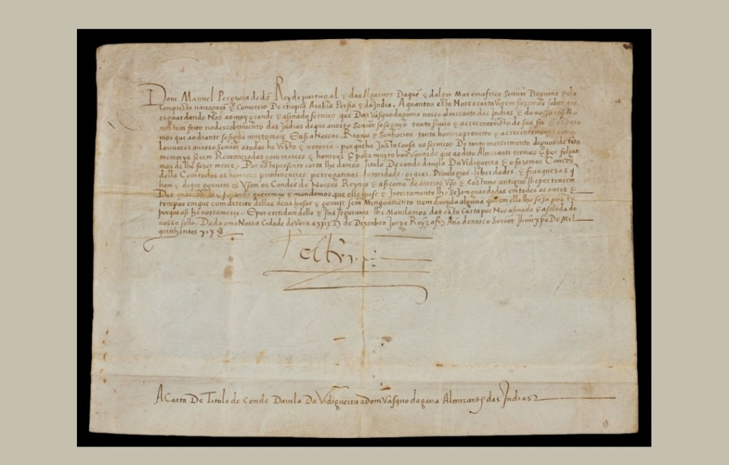 Segundo avança o Público, uma carta régia assinada por D. Manuel I, que oficializava a atribuição do título de Conde da Vidigueira a Vasco da Gama, foi recentemente leiloada em Londres pela Sotheby’s, mas acabou por não ser vendida.