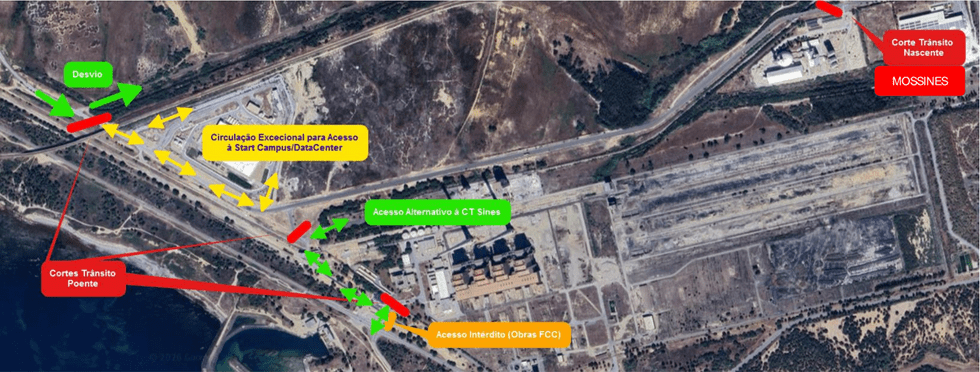 De acordo com a Câmara Municipal de Sines, as restrições à circulação terão início a partir das 10h30 e serão acompanhadas pelas autoridades competentes, nomeadamente a GNR, a Brigada de Trânsito da GNR e a Protecção Civil. O condicionamento vai abranger vários pontos nas imediações da antiga central, incluindo o entroncamento da antiga estrada do aeródromo, do lado poente, a zona junto da Mossines, do lado nascente, antes do viaduto sobre a linha férrea, e a frente da Central Termoeléctrica, junto ao início da via de acesso à entrada da instalação. Apesar das restrições, ficará assegurado o acesso às instalações da antiga Central Termoeléctrica pelo lado poente. Também será salvaguardado o acesso à StartCampus, sendo que a saída deverá ser feita pela mesma via de entrada, com saída obrigatória à direita.